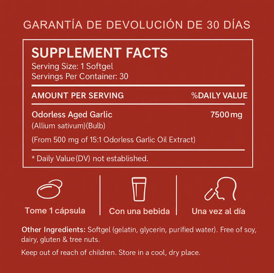 Aged Garlic Extract 7500 mg - El secreto natural para el apoyo general al bienestar cardiovascular