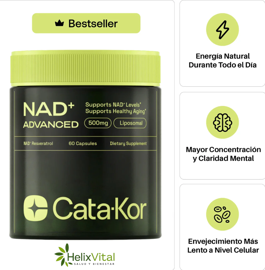 - ¿Qué hace que Cata-Kor™ sea diferente de otros suplementos?NeuroAge Boost™ utiliza una fórmula avanzada con NAD+ liposomal, que permite una absorción significativamente superior a la del NAD+ regular. Esto significa que más nutrientes llegan a tus células, logrando una mayor eficacia.