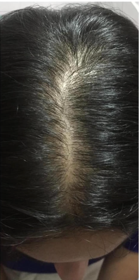 mi cabello se ve más sano y denso, especialmente en la parte de arriba."