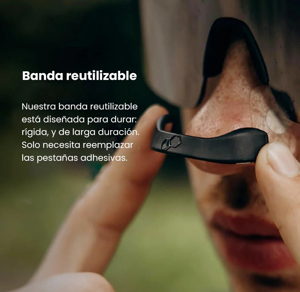 - Tecnología Magnética: El sistema usa una banda de alivio magnética y dos pequeñas pestañas que se adhieren a la parte inferior de tus fosas nasales.
